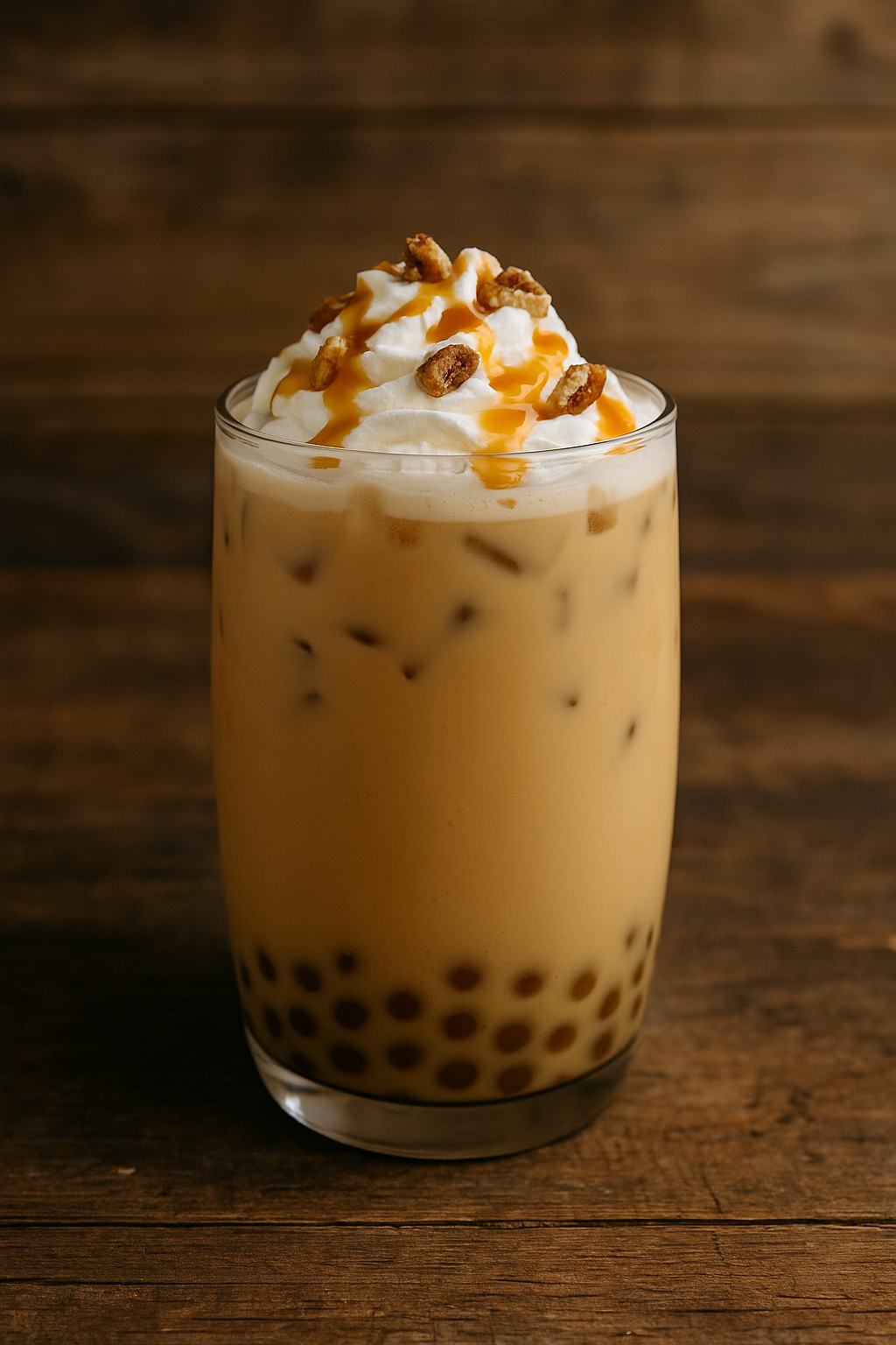 Warm cinnamon apples, buttery crust, gooey caramel sauce — topped with glistening Better Boba mango pearls for the perfect crunch-meets-chew experience.