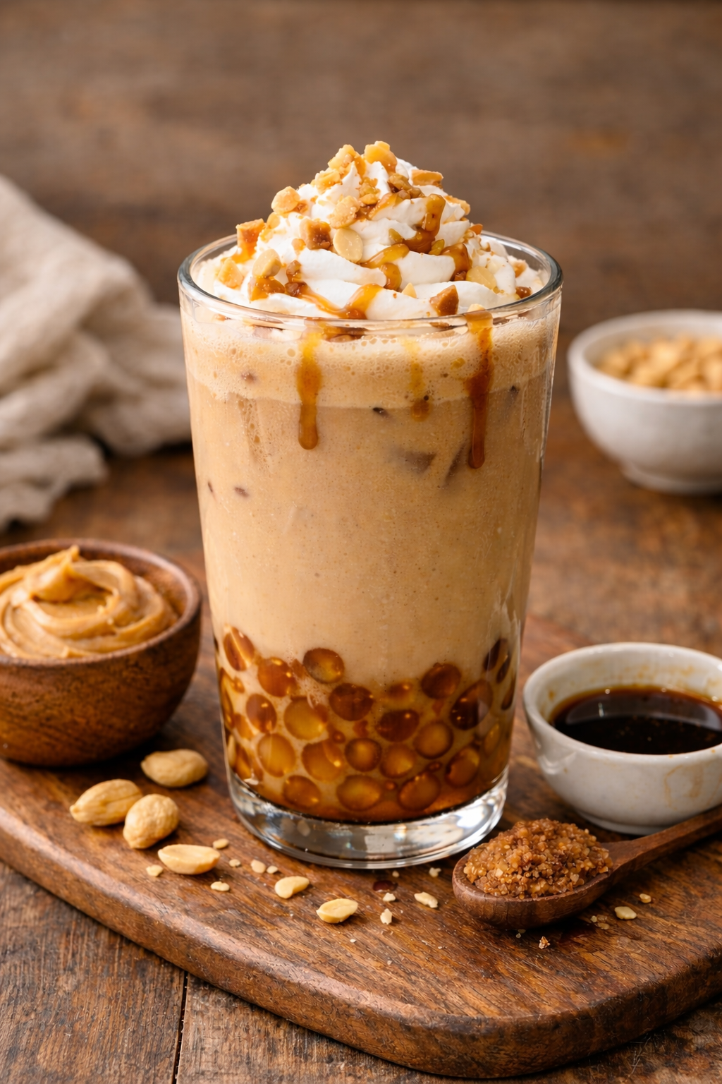 This Peanut Butter Brown Sugar Boba Latte is creamy, nutty, slightly sweet, and perfectly indulgent. Think classic milk tea meets peanut butter cup… but with that signature boba chew in every sip.
