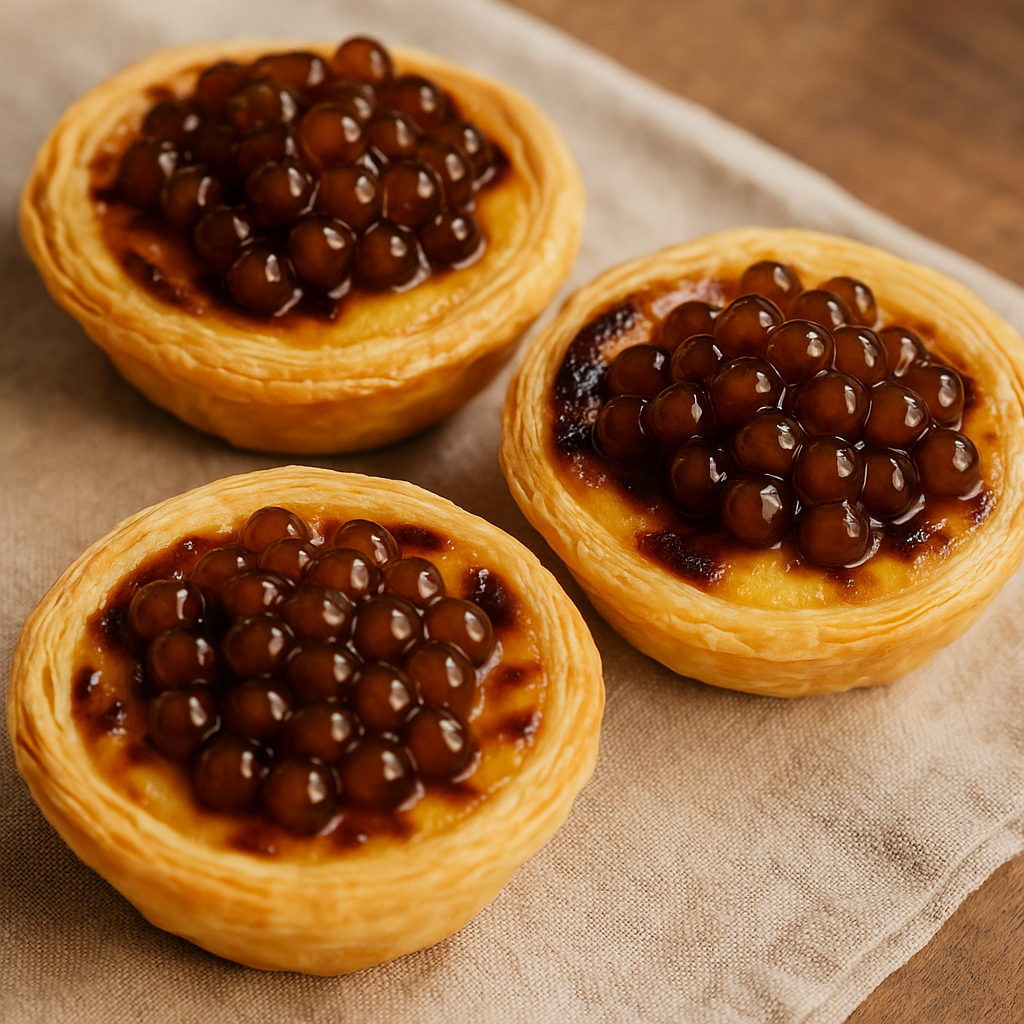 This recipe takes the rich, velvety custard of traditional Pastéis de Nata (Portuguese egg tarts) and gives it a chewy, modern twist with Better Boba’s Classic Brown Sugar pearls. The warm boba adds a caramel depth and texture that pairs beautifully with the creamy custard and crispy pastry.